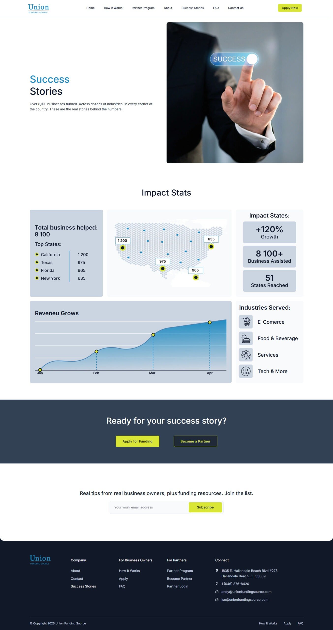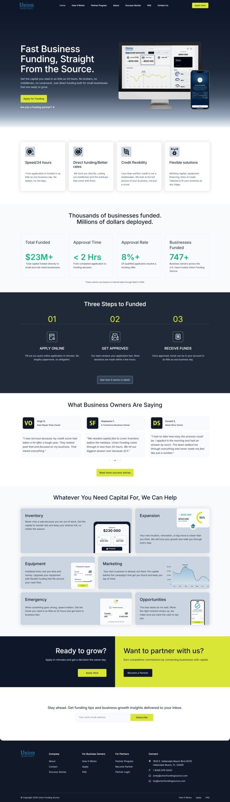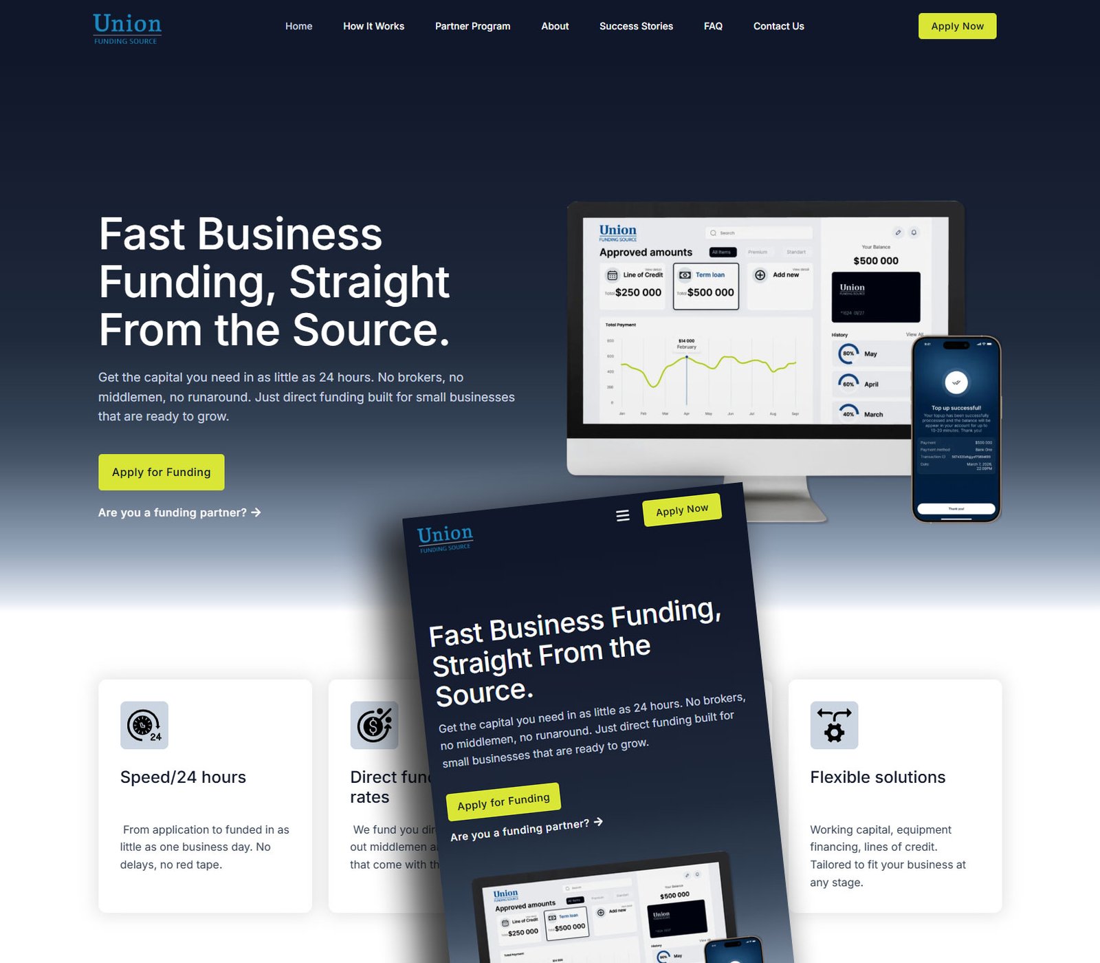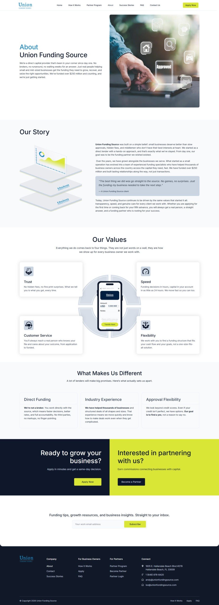 Union Funding Source is a direct capital provider from the USA. In their case, the need for a redesign of their existing website coincided with a strategic decision to expand their business activities through partnership arrangements.